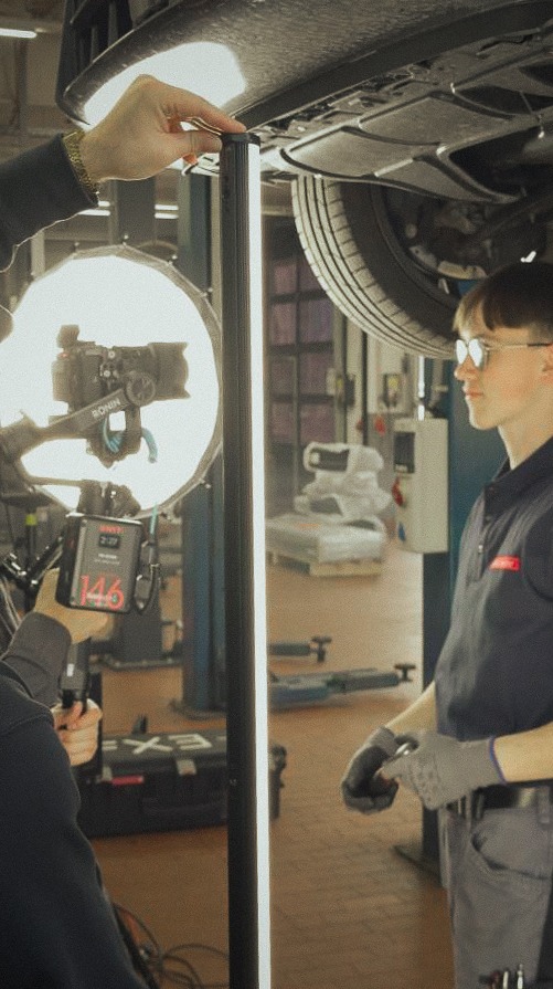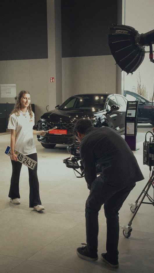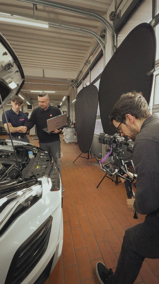 Bei einem Kinospot zählt jede Sekunde! Hier hatten wir 20 Sekunden, um die beiden Ausbildungsberufe des Autohauses darzustellen. Das bedeutet im Umkehrschluss: Wir konnten keine Sekunde dem Zufall überlassen!